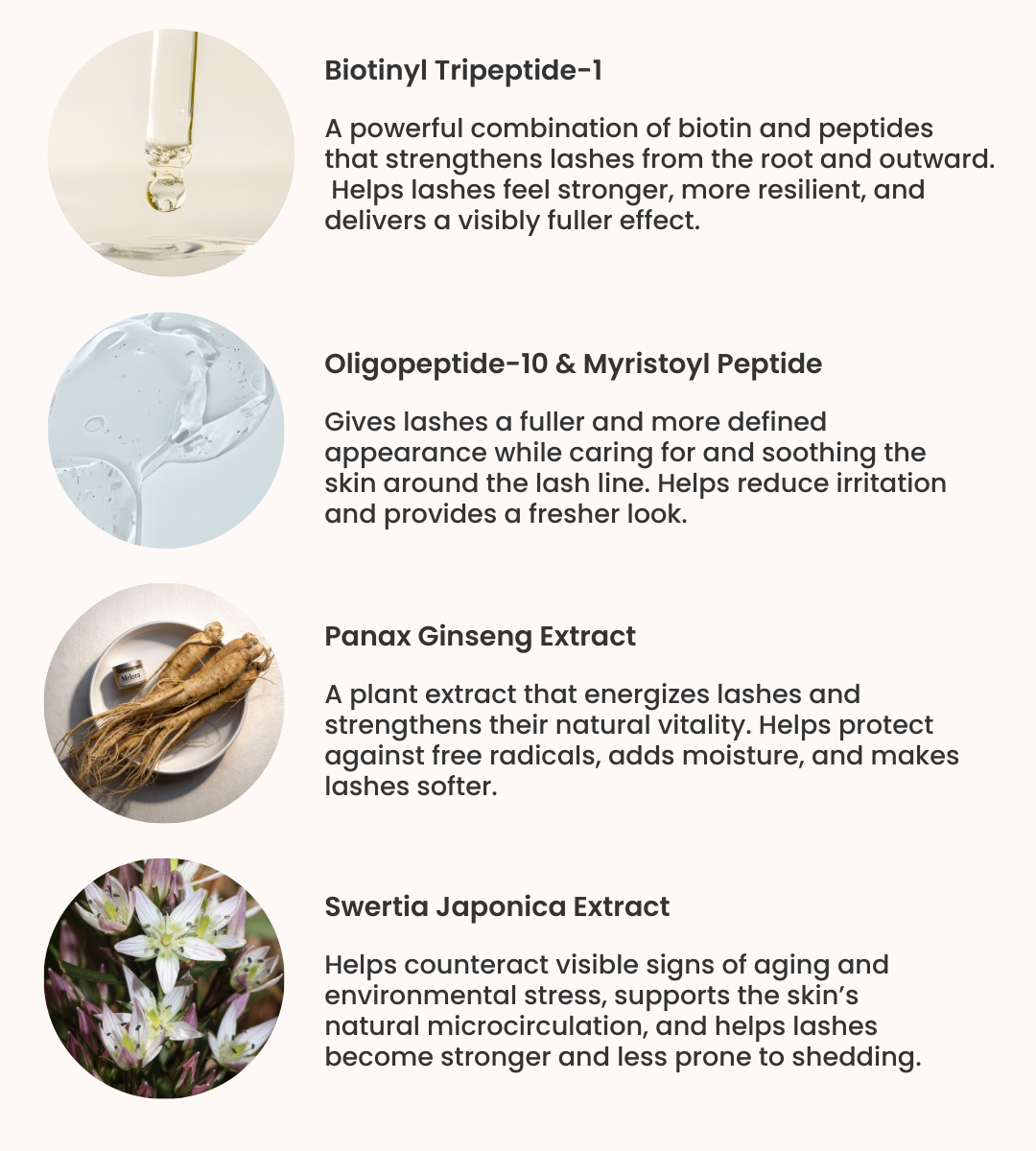 ✓ Vegan formula without prostaglandin analogs, parabens and oils. Also suitable for lash extensions and contact lenses.