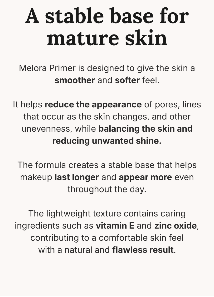 A smoothing primer that softens the skin's texture and helps to blur pores and fine lines. At the same time, it moisturizes the skin and ensures that your makeup stays nice and even throughout the day.